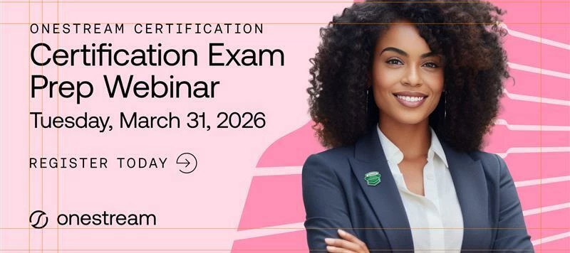 Join us on Tuesday, March 31, 2026, at 11:00am ET for a 60-minute session led by OneStream experts. This webinar will review key topics covered on the exam and provide additional context to support your exam preparation.